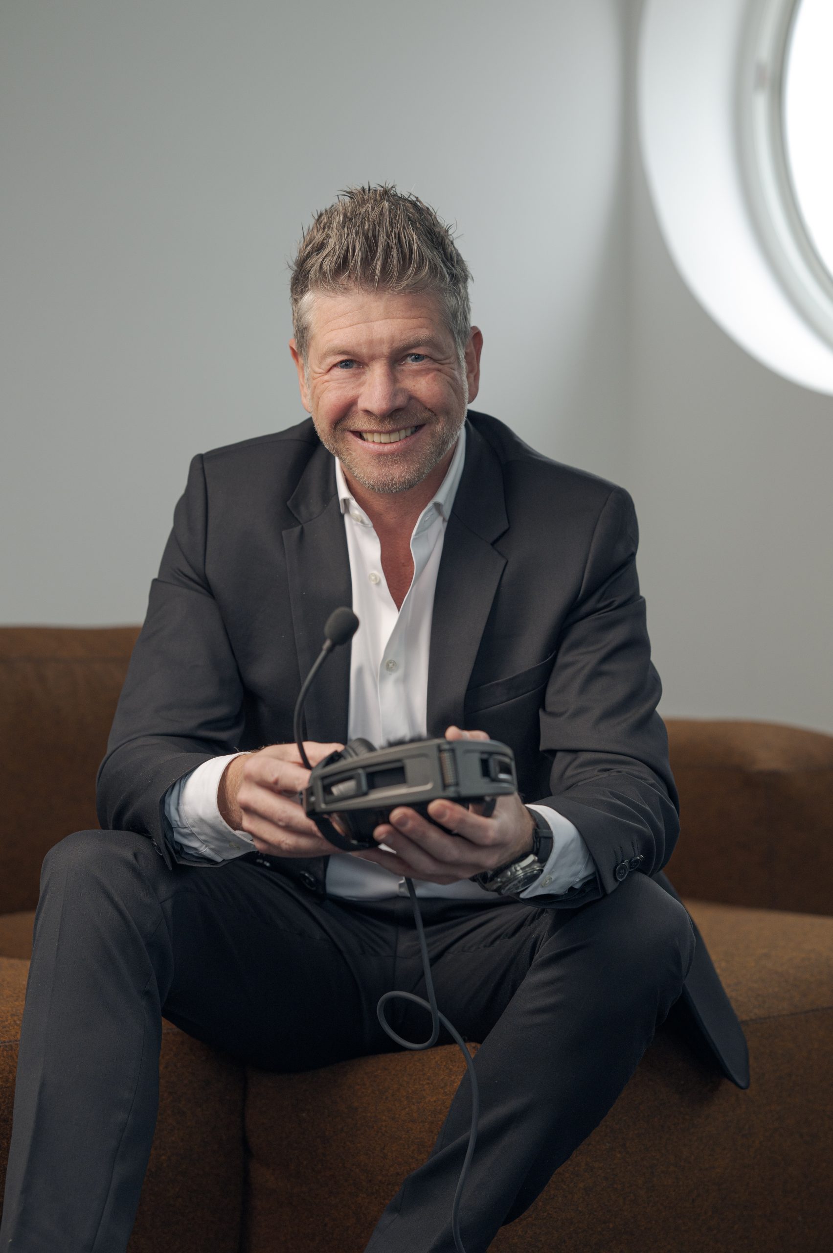 paricon Vorstand Carsten Bein posiert mit einem Longboard.